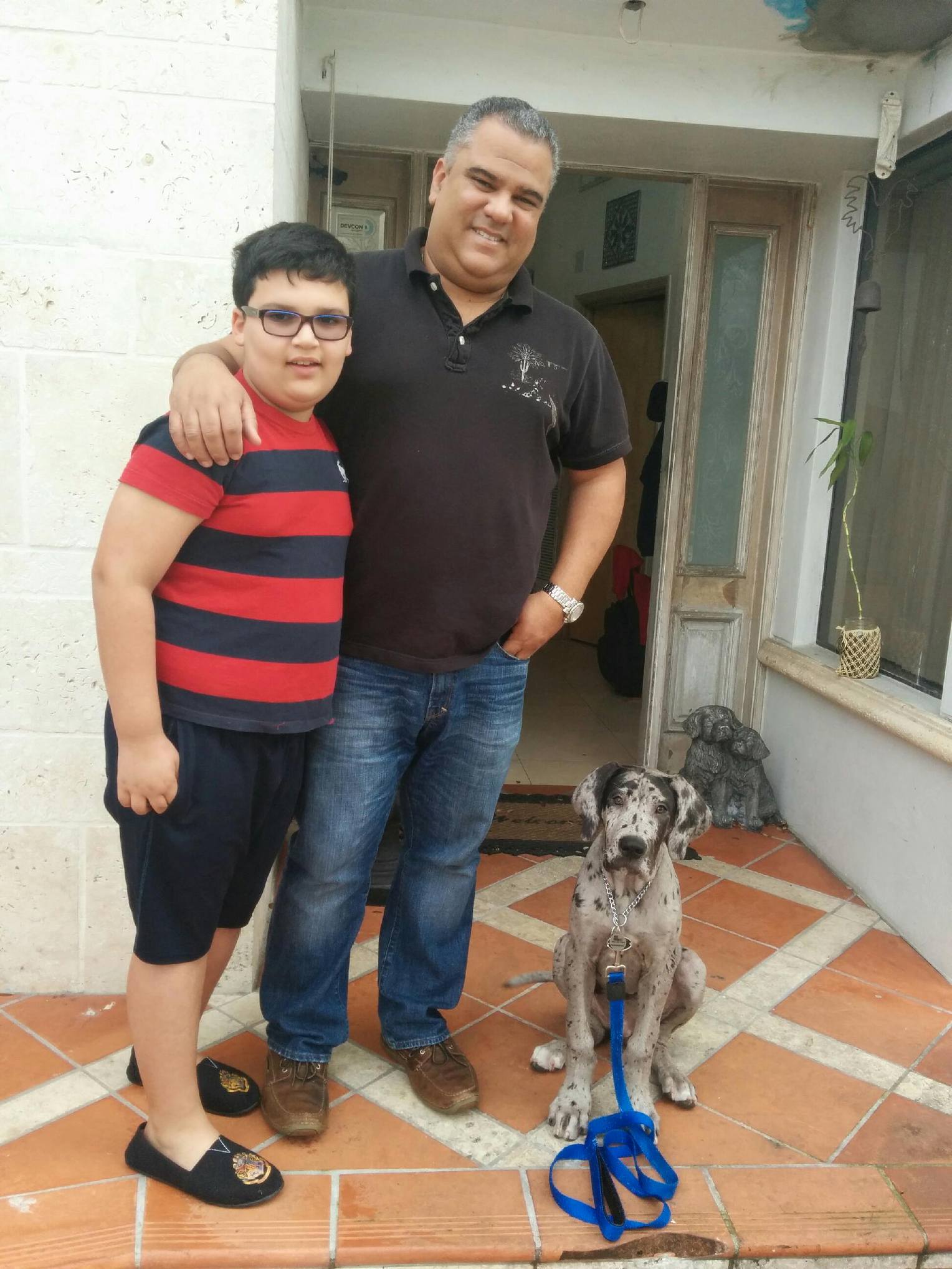 Carlos is very patient and soft spoken with both the dog and the dog owner.